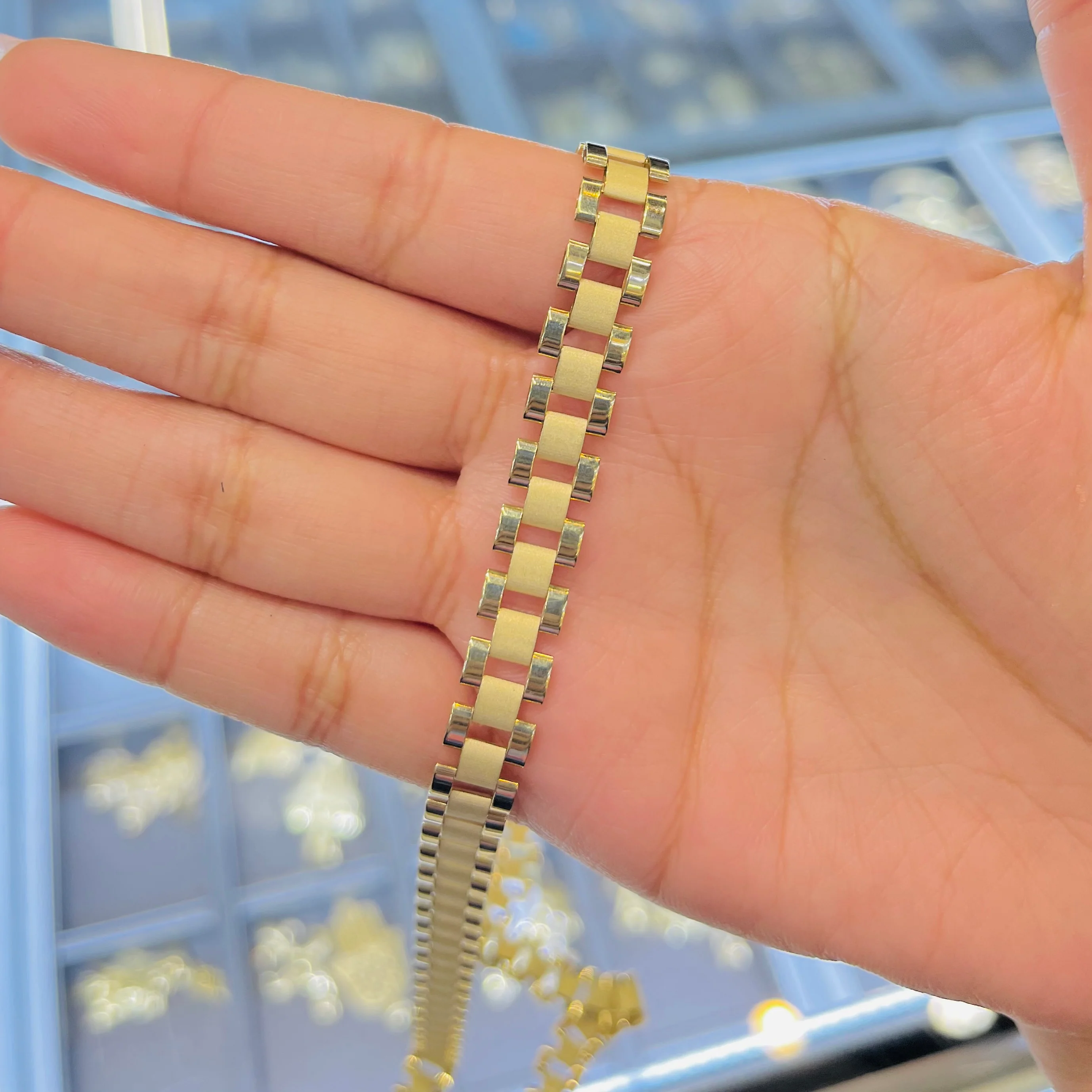 Check out this 8mm 10K Gold PREMIUM Rolex Chain we got right here. Made with solid 10K gold, this chain rocks a sleek 8mm width, making it the ultimate accessory to elevate your game. The fold over clasp ensures a secure fit far superior to the traditional lobster clasp.