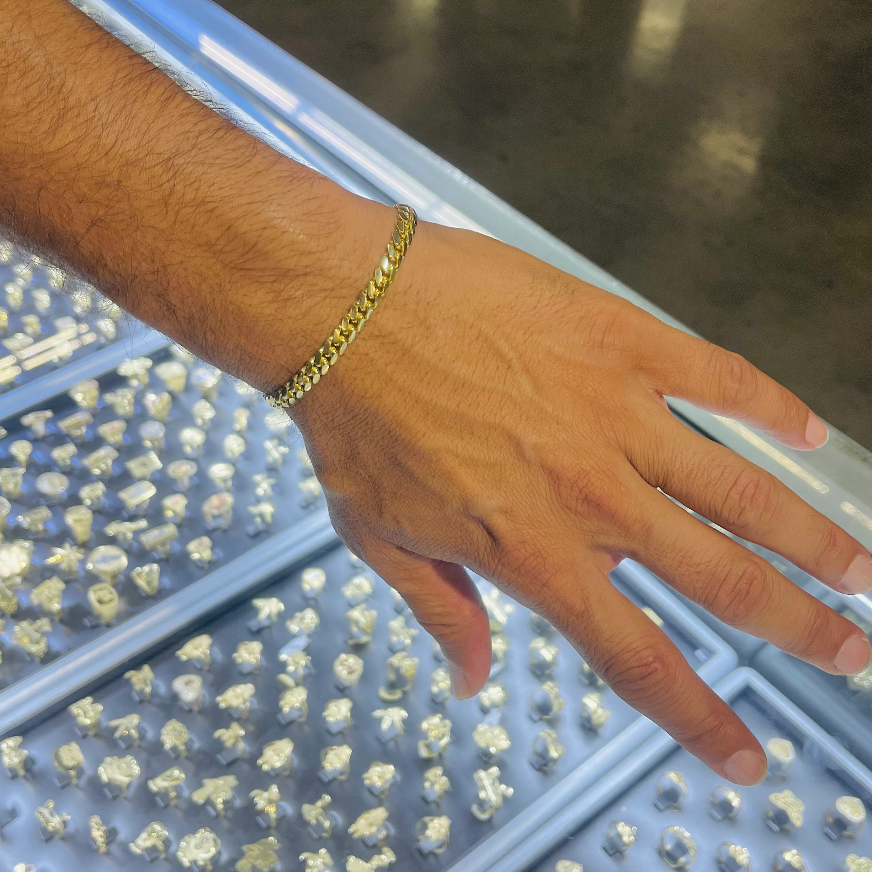 Indulge in luxury with our 14K Gold Solid Miami Cuban Bracelet. This stunning 6MM masterpiece features a reliable box lock closure, ensuring your precious investment remains secure while making a bold statement. The classic Miami Cuban design exudes confidence and sophistication, perfect for those who demand both style and substance. Elevate your jewelry collection with this timeless piece that transitions effortlessly from day to night.