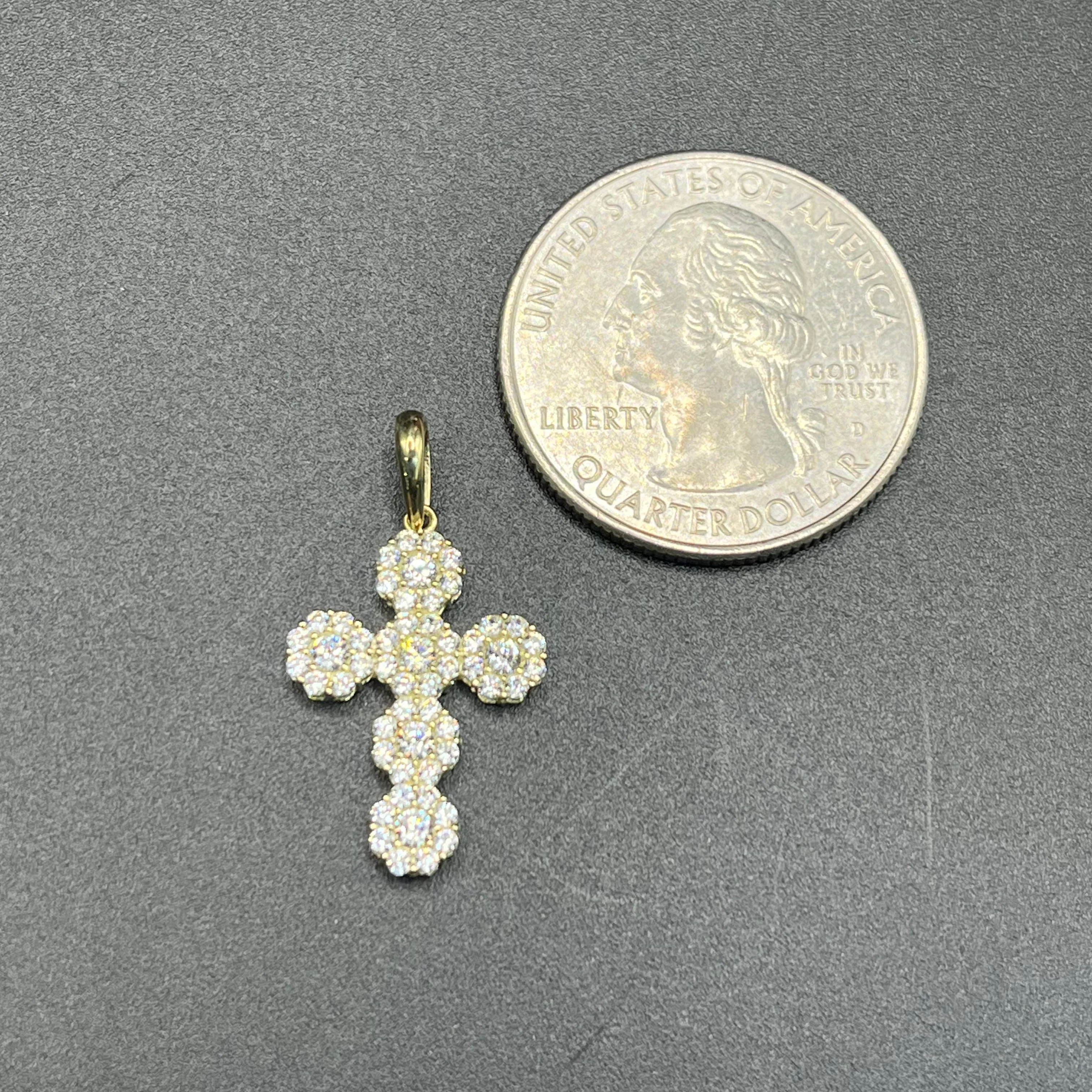 10k Gold White CZ Flower Cross (Small)