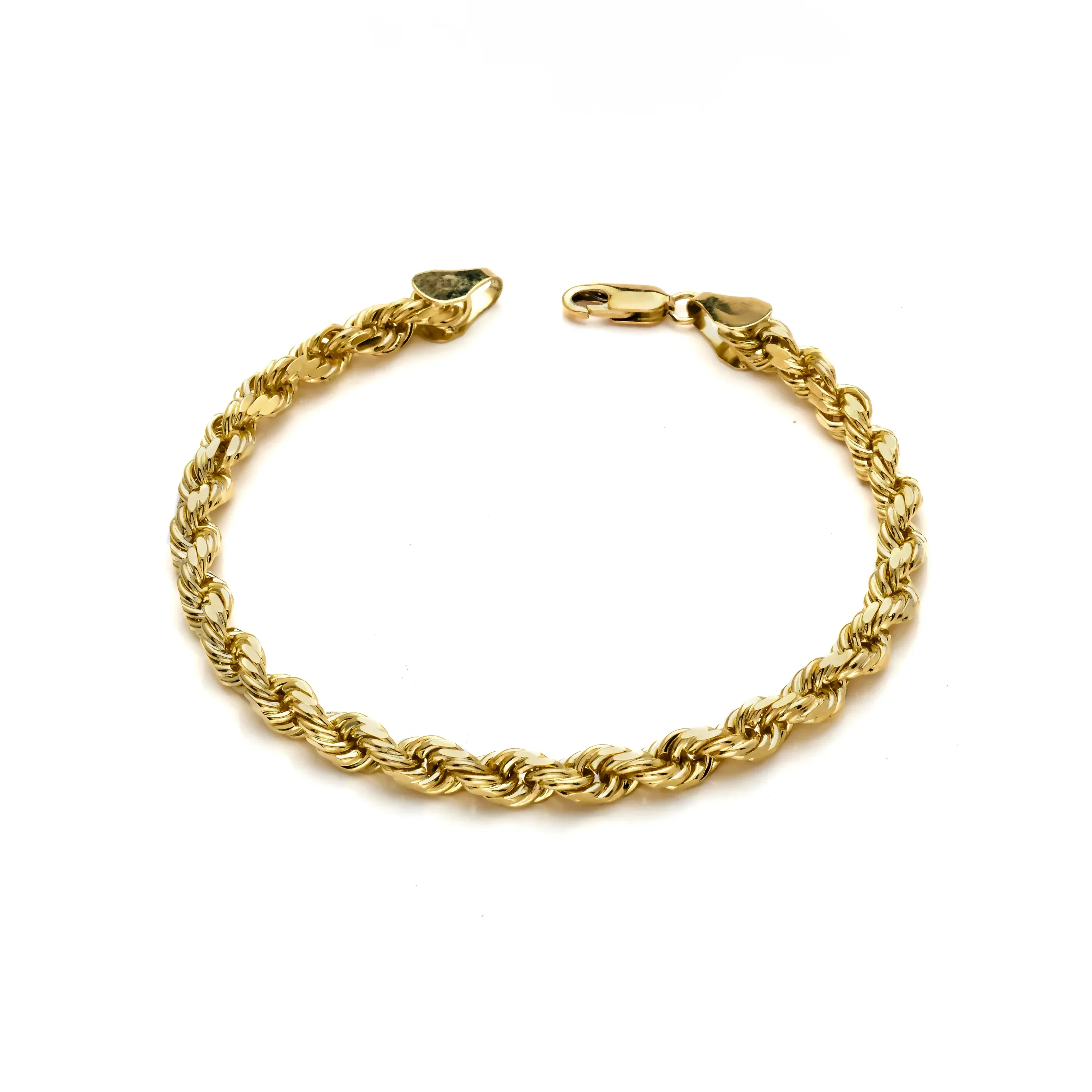 peep this next-level 10K Gold Diamond Cut Rope Bracelet, rollin' in at 5MM thick! This ain't just any ordinary bling—it's all about that intricate diamond-cut design, catchin' light from every angle. Level up your wrist game with this fine piece, rockin' that golden shine and diamond swagger, 'cause you deserve nothing but the best!