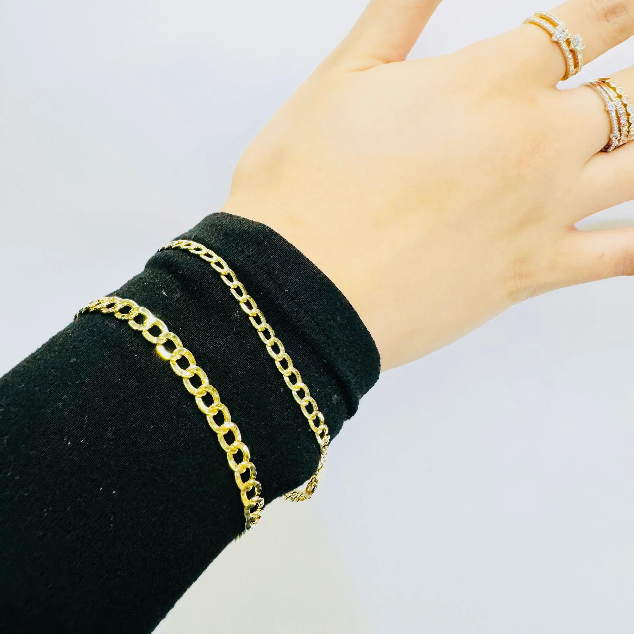 Indulge in timeless elegance with our 14k gold cuban bracelet, delicately crafted at 3.5 mm for a refined allure. Its intricate design exudes sophistication, making it a versatile accessory suitable for both men and women, adding a touch of luxury to any ensemble.